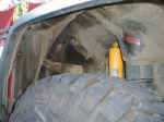 I also removed the wheel well shroud. I didn't need to, I was just curious. The XJ consensus is that if you don't need to remove this giant piece of molded plastic, leave it in place. My trimming wasn't severe enough to warrent removal. (It's going to be a pain replacing it.)