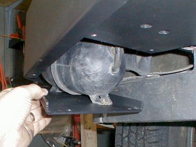 Again, the M10 metric bolts use a 17 mm socket. The 1/2" bolts use a 3/4" socket. Attaching the Mounting Arms with the three metric bolts is easy. The fourth longer, 3 1/2" bolt toward the rear isn't much harder. Again, the flexible fiber-board shield gets in the way.