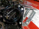 Before Hill did the hard work, I prepared for the ARB lockers by installing the ARB air compressor. Finding an installation location inside the engine compartment of a Cherokee isn't easy, even for something as small as the ARB compressor. I was not really choosing the "best" location... more like choosing the "least bad" spot. There seemed to be enough room above the brake equipment, so I fabricated some cheesy, but functional, brackets out of steel strap, relocated the hood release cable, and bolted on the compressor.