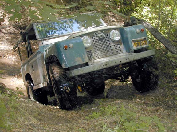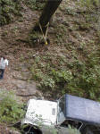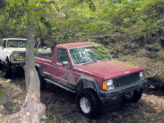 You can see Dennis (red CJ) winching Ray with the snatch block. Joe's IH Scout anchored Dennis, but they were still sliding a little. My Cherokee was using the uphill tree to pull Ray away from the rocks while they winched him out backwards. I love that X-Line!