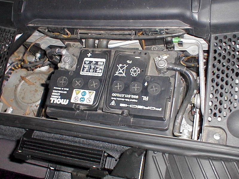 The original Moll battery in the Boxster finally died in January 2005. It was almost eight years old, so its failure was not unexpected. Interestingly, it did not die in the same way other batteries have. Although it would barely crank the engine, it could actually start the car. The charger, left running all night, had no effect.